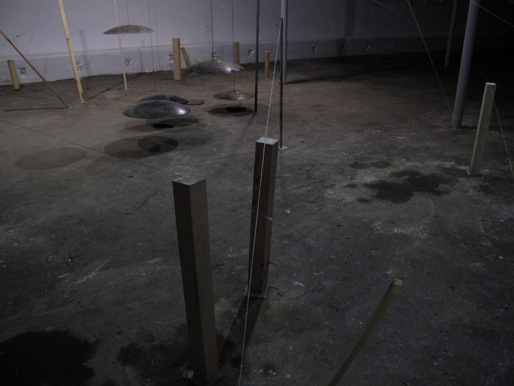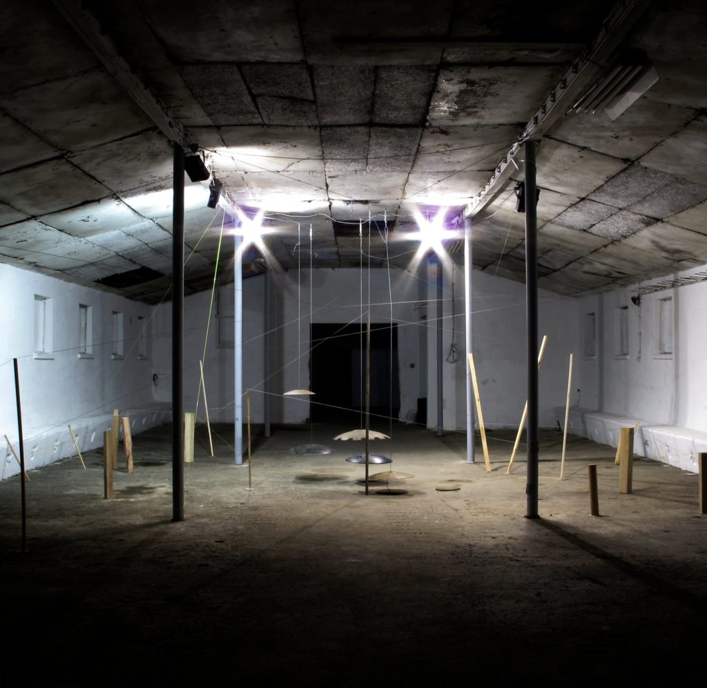 Steel wires, strings of different materials and thickness, metal plates, resonant objects, microphones, hanged, drawn, hung up the installation that propagates in space, giving shape to blocks isolated, like real rooms where the players use the experimental scores as if they were adventurous routes to know where to forward and face the next challenge.