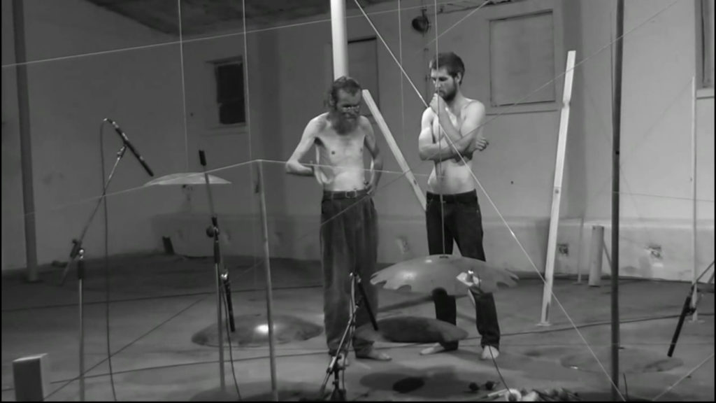 Fios de aço, cordas de diferentes materiais e espessuras, placas de metal, objetos ressonantes, microfones, pendurados, desenhados, suspensos, constituíam a instalação que se propagava no espaço, dando forma a blocos isolados, como se fossem verdadeiros compartimentos onde os artistas utilizam as partituras experimentais como se fossem rotas aventureiras, a fim de descobrir para onde avançar e enfrentar o próximo desafio.