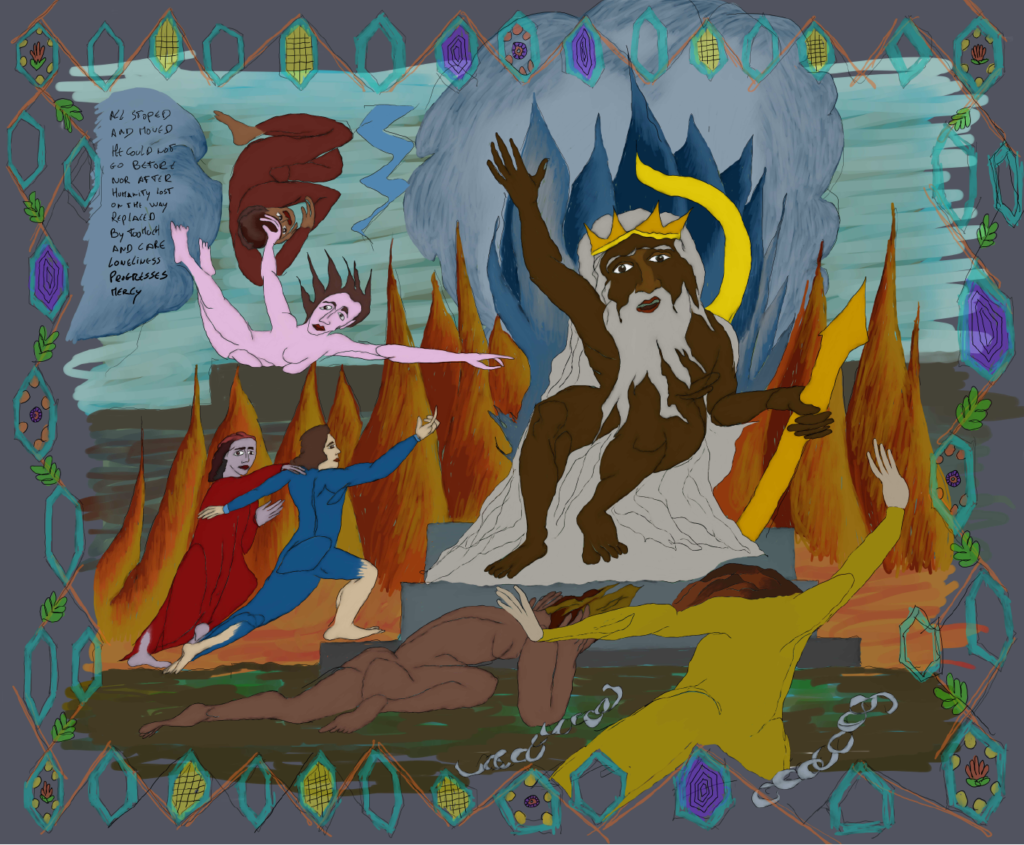 In this work, I draw upon these psychological and spiritual frameworks to explore the complex emotional landscape of mid-life. The creative process itself becomes a metaphor for Dante’s journey, a way to navigate the tensions between the unconscious and conscious, the personal and the collective, the finite and the infinite. Like Dante, I seek to offer a visual representation of the psychological and spiritual rebirth that can occur when we confront our anxieties, accept responsibility for our past, and move toward a more integrated and purposeful future. The mid-life crisis, though challenging, is also a powerful opportunity for transformation, an invitation to walk through the realms of self-doubt, fear, and unfulfilled desires, ultimately to emerge as a more whole, authentic self.