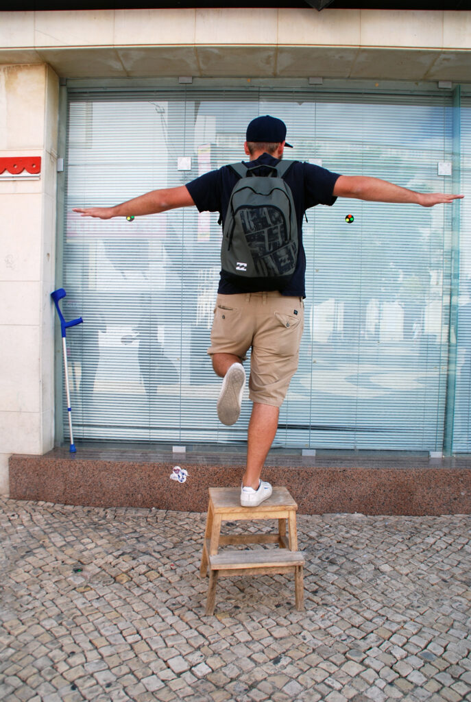 Esta série de fotografias capta indivíduos posando diante de um símbolo motivacional, em cima de uma pequena escada. Cada imagem reflete a jornada pessoal do artista na sua recuperação física após um grave acidente, simbolizando a luta entre a aspiração e a limitação. A escada, um símbolo universal de progresso e ascensão, torna-se tanto uma ferramenta literal como metafórica para alcançar mais alto, apesar das cicatrizes do passado. Através destes momentos posados, a obra convida o espectador a refletir sobre a resiliência, as complexidades da cura e a busca pela autoaperfeiçoamento face à adversidade.